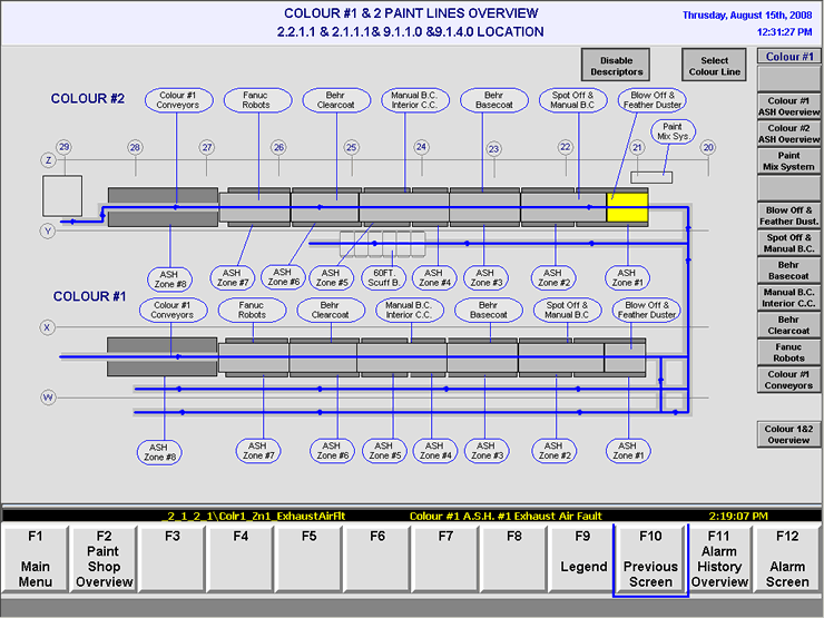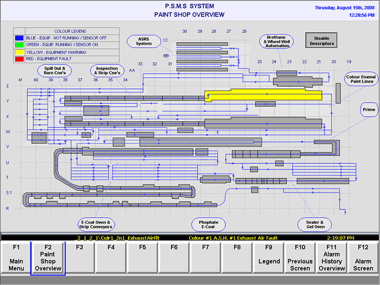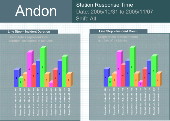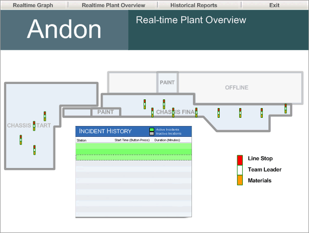 A Production Alarming System (Andon) highlights operators' requests for assistance using both visual and audible signals.
